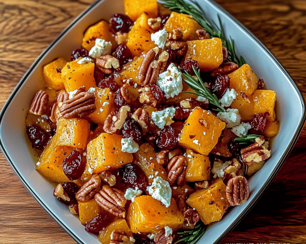 Honey Roasted Butternut Squash with Cranberries, Pecans, and Feta